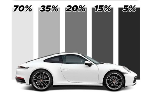 Lower percentages indicate darker tints. For example, a 5% tint (limo tint) is much darker than a 35% tint, as it allows only 5% of visible light to pass through.